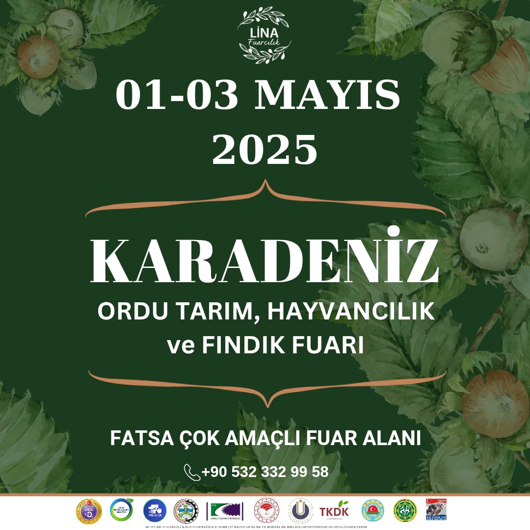 Lina Fuarcılık organizasyonuyla, 1-3 Mayıs 2025 tarihleri arasında Ordu’da ilk kez düzenlenecek olan 1. Ordu Tarım, Hayvancılık ve Fındık Fuarı, tarım sektörünün tüm paydaşlarını bir araya getirmeye hazırlanıyor!