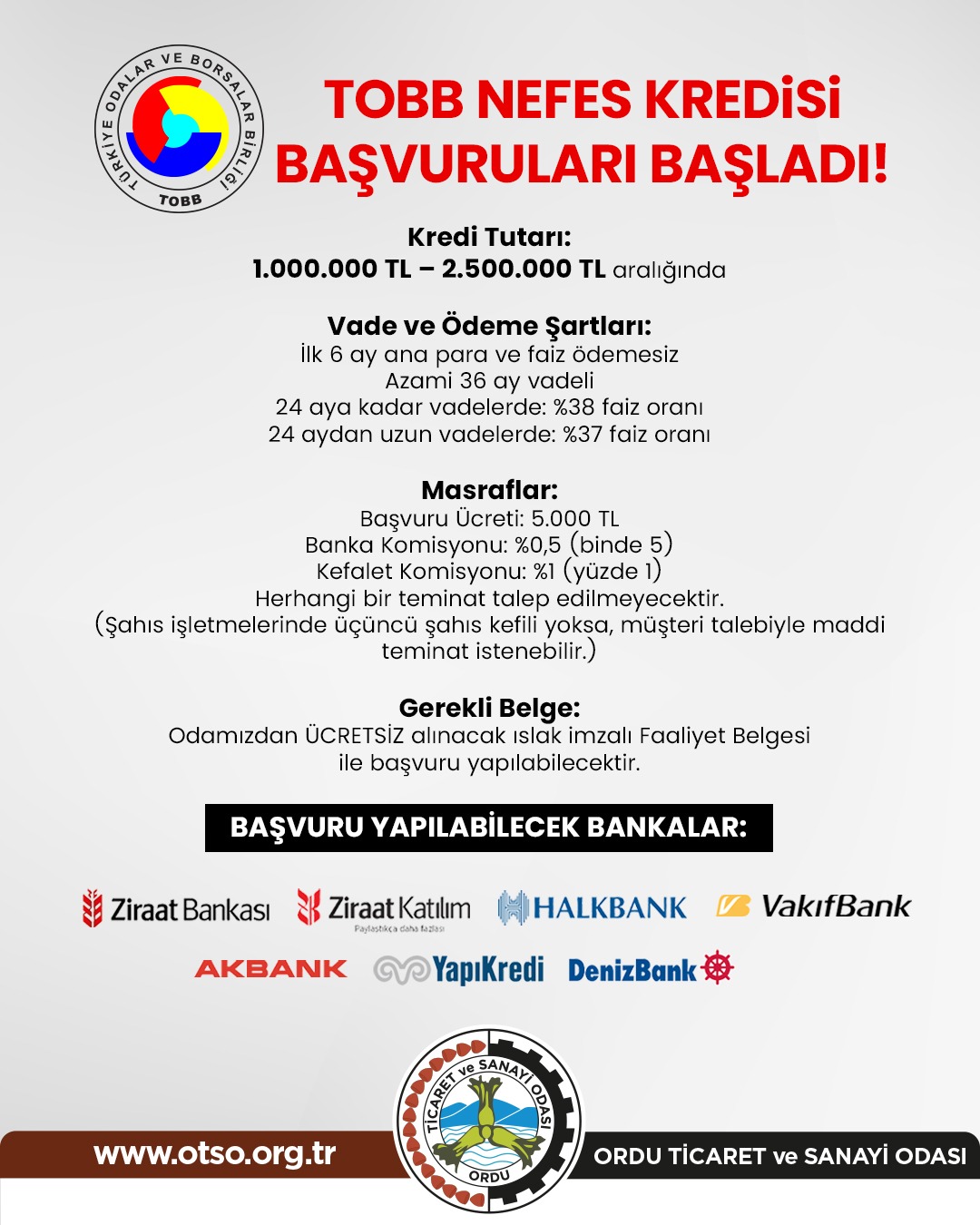 📢 TOBB NEFES KREDİSİ BAŞVURULARI BAŞLADI!